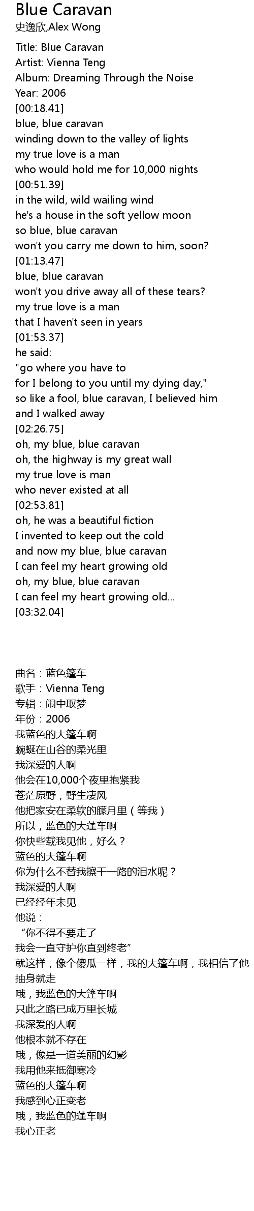 | [03:05.35] | and now my blue, blue caravan |