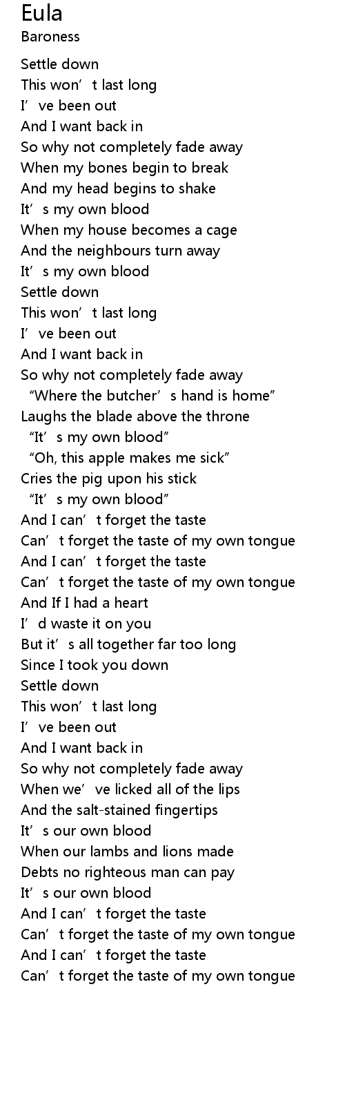 | Can’t forget the taste of my own tongue | |