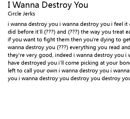 i wanna destroy you i wanna destroy you i feel it coming on again just like it did before it'll (???) and (???) the way you treat each other makes me(???) and if you want to fight them then you're dying to get killed i wanna destroy you i wanna destroy you (???) everything you read and tell you your opinions and they're very good, indeed i wanna destroy you i wanna destroy you and when i have destroyed you i'll come picking at your bones you won't have a single atom left to call your own i wanna destroy you i wanna destroy you i wanna destroy you i wanna destroy you destroy you destroy you destroy you destroy you |