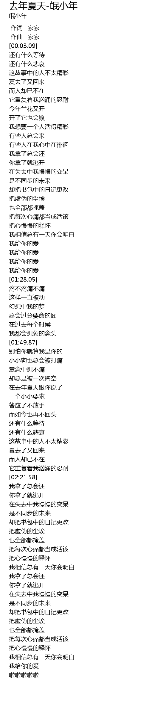 | [02:00.290] | zai qu nian xia tian gen ni shuo le |