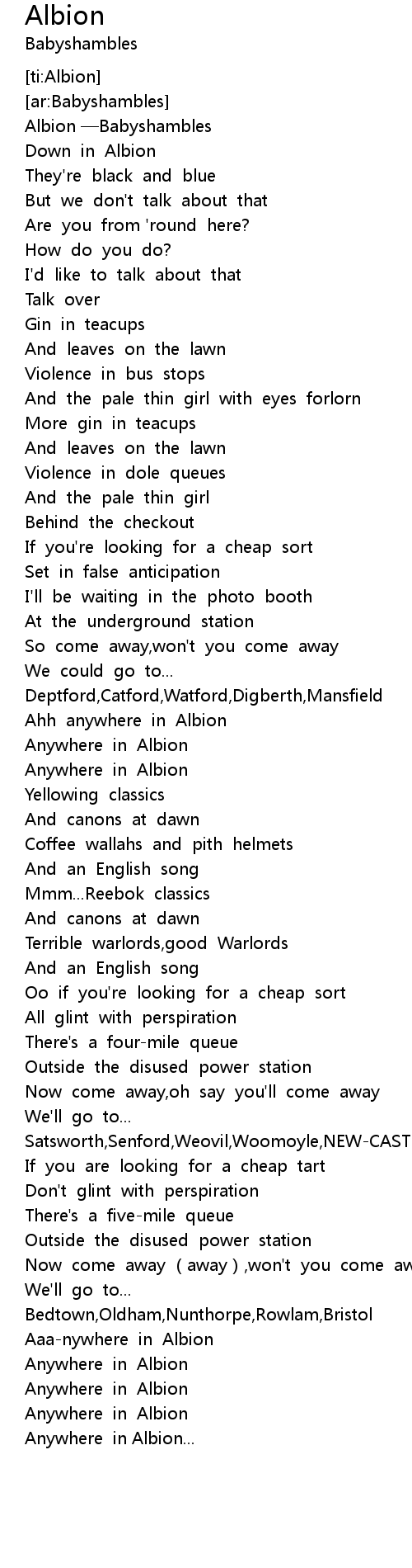 | [00:03.930] | Albion Babyshambles |