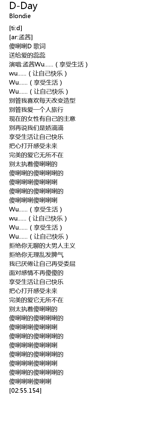 | [02:42.791] | 傻喇喇喇傻喇喇喇 |