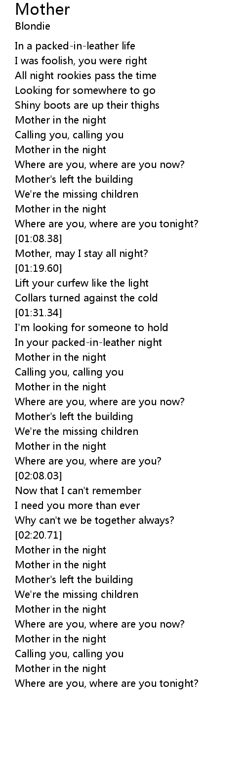Mother, may I stay all night? |
