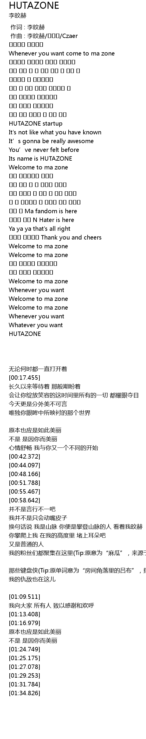 | [01:42.450] | HUTAZONE |