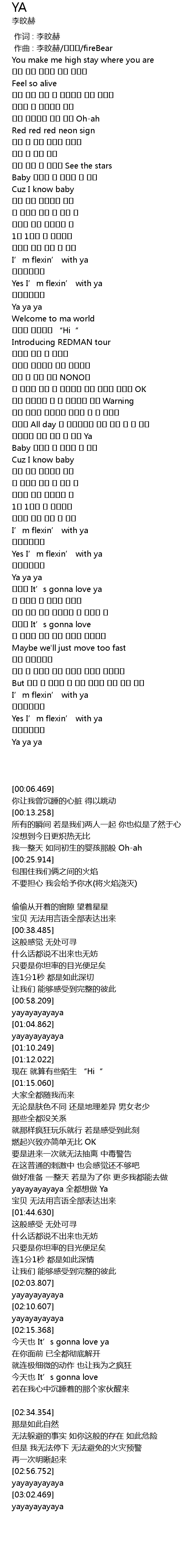 | [01:34.886] | 야야야야 하고 싶은 건 다해 Ya |