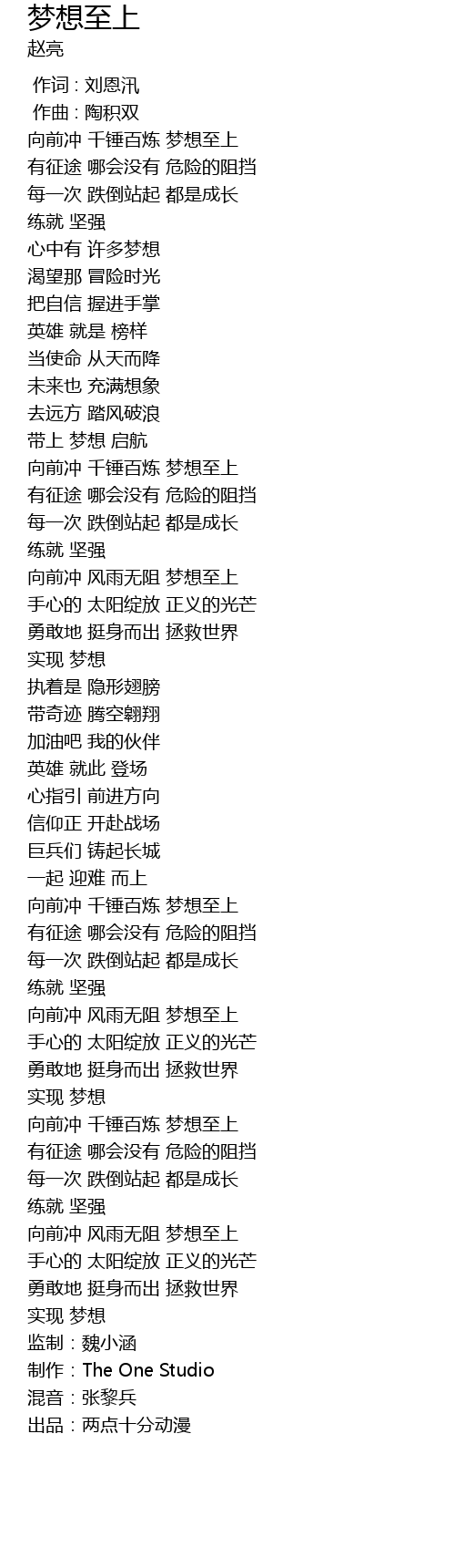 | [02:41.80] | 向前冲 千锤百炼 梦想至上 |