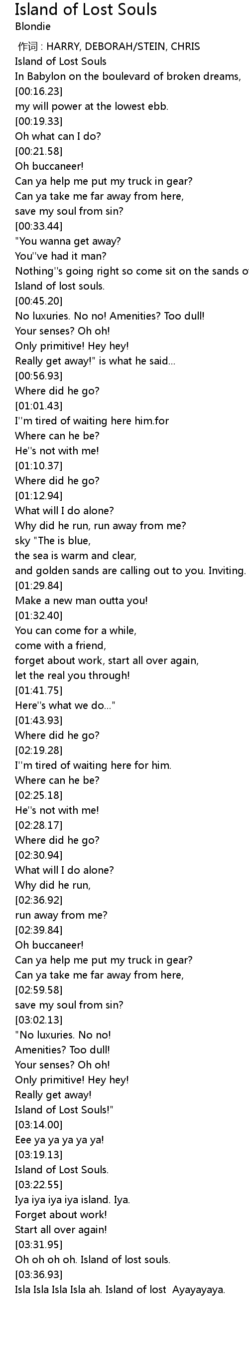 | [03:32.95] | Oh oh oh oh. Island of lost souls. |