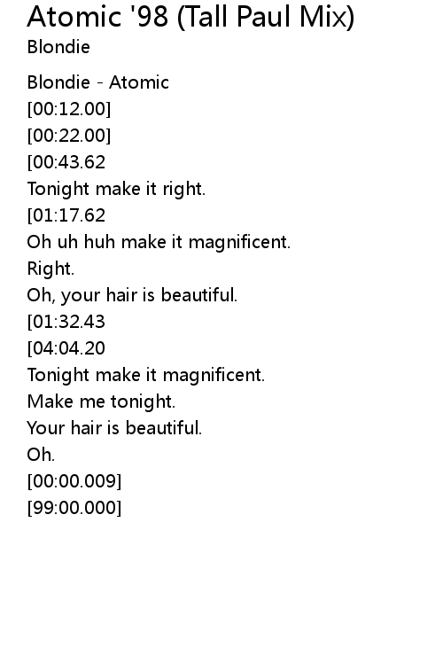 | [04:06.14][04:04.20][01:38.40] | Atomic. |