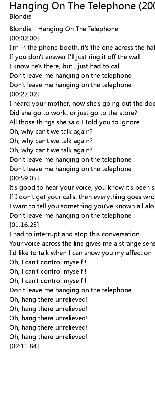 Don't leave me hanging on the telephone |