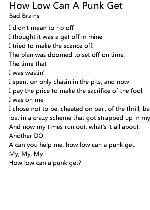 A can you help me, how low can a punk get. |