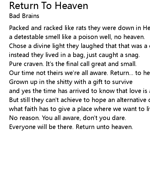 Our time not theirs we're all aware. Return... to heaven. |
