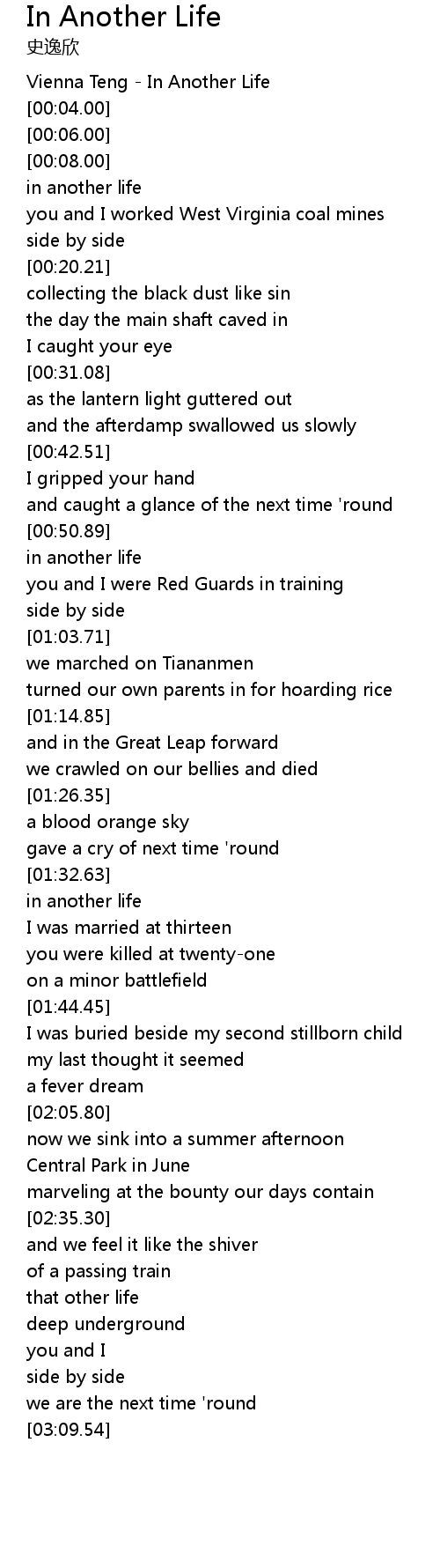 [00:02.00] Vienna Teng - In Another Life