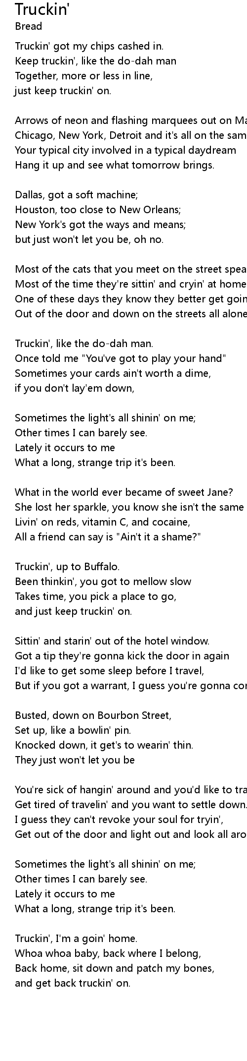 Truckin' got my chips cashed in. |