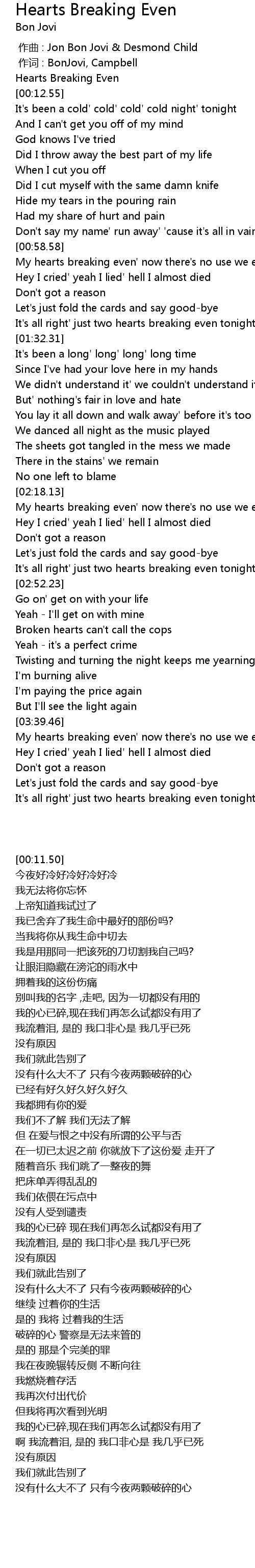 | [00:01.00] | zuò cí : BonJovi, Campbell |