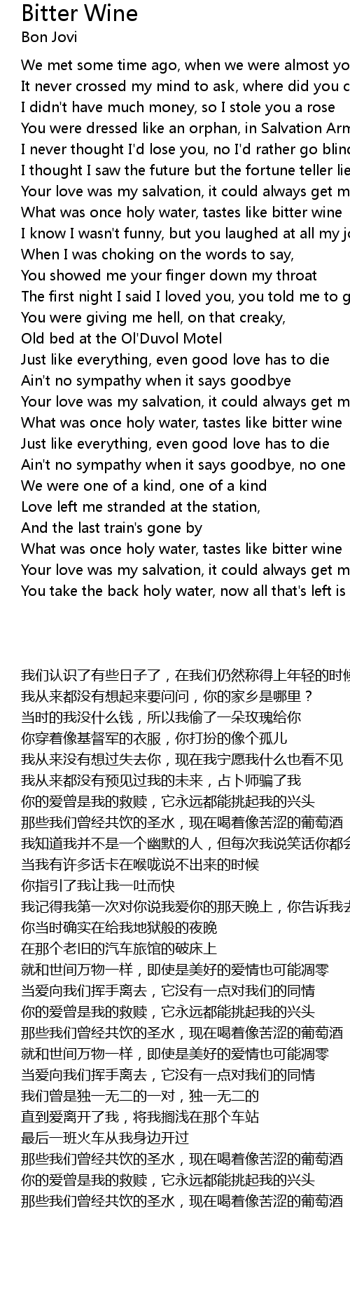 Bitter Wine Lyrics