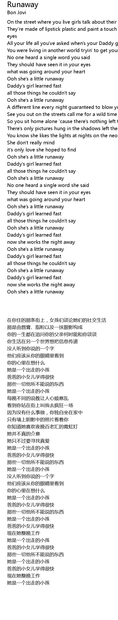 | [00:31.01] | All your life all you've asked when's your Daddy gonna talk to you |