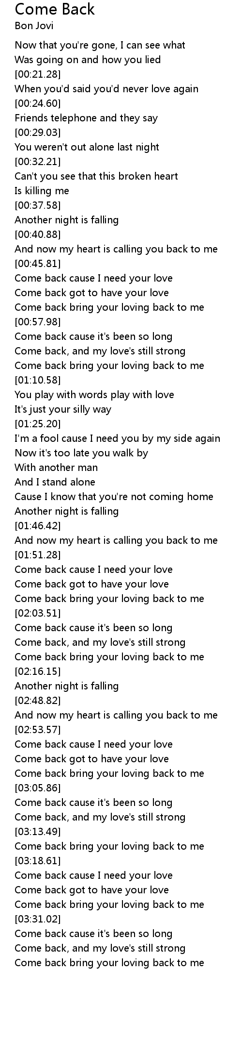 | [03:35.64] | Come back, and my love's still strong |