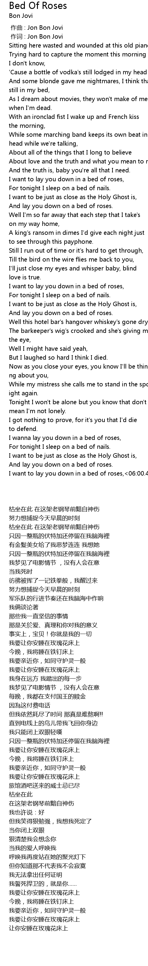 | [05:51.830] | I want to lay you down in a bed of roses, 06: 00. 458 |