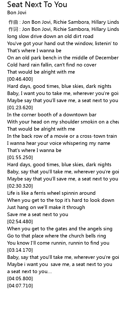 | [01:09.560] | Maybe say that you'll save me, a seat next to you |