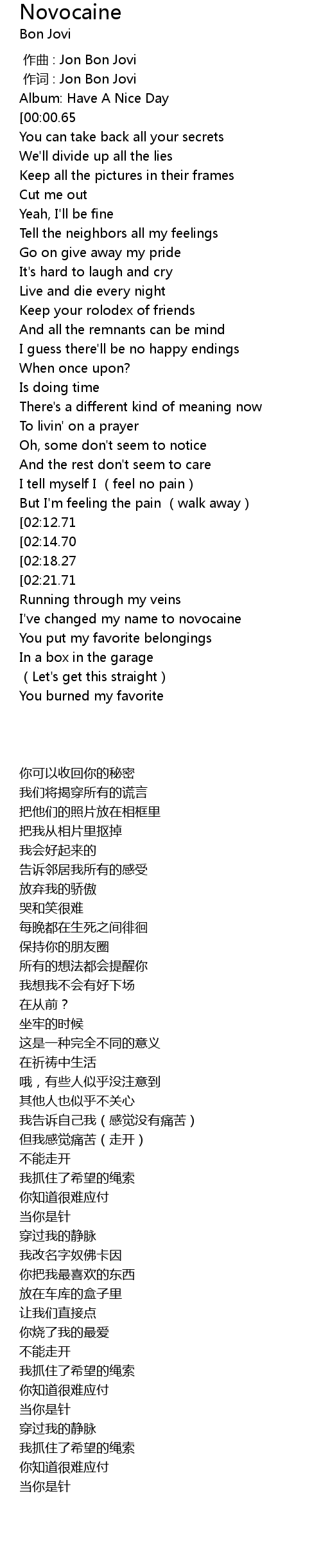 | [00:00.04] | 作词 : Jon Bon Jovi |
