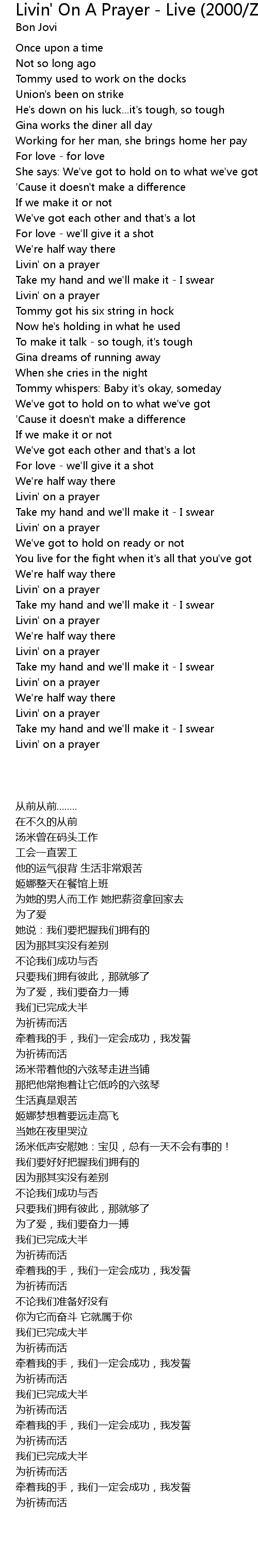 Livin' On A Prayer - Live (2000/Zurich) Lyrics