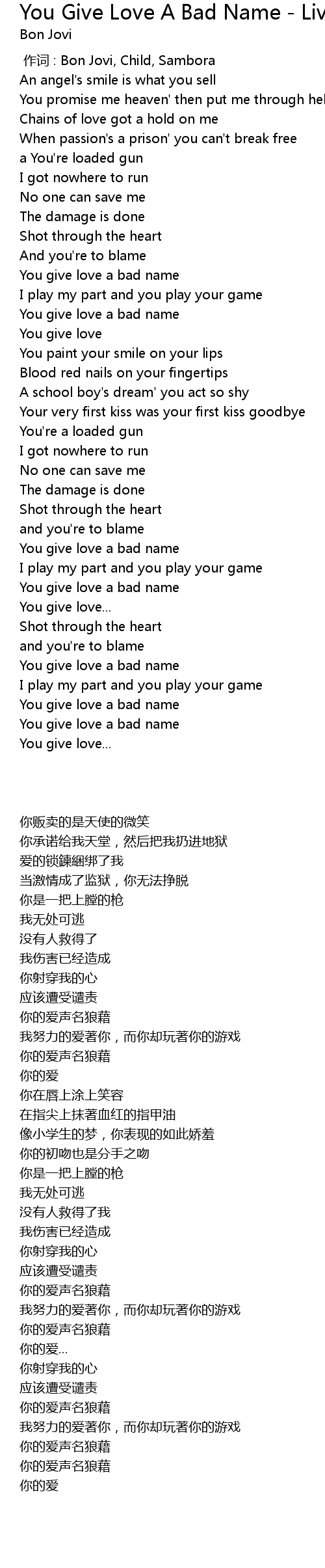 | [00:00.00] | 作词 : Bon Jovi, Child, Sambora |