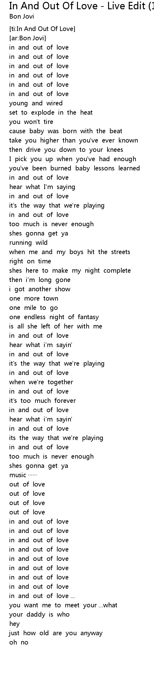 | Song | In And Out Of Love - Live Edit (1985/Tokyo) |