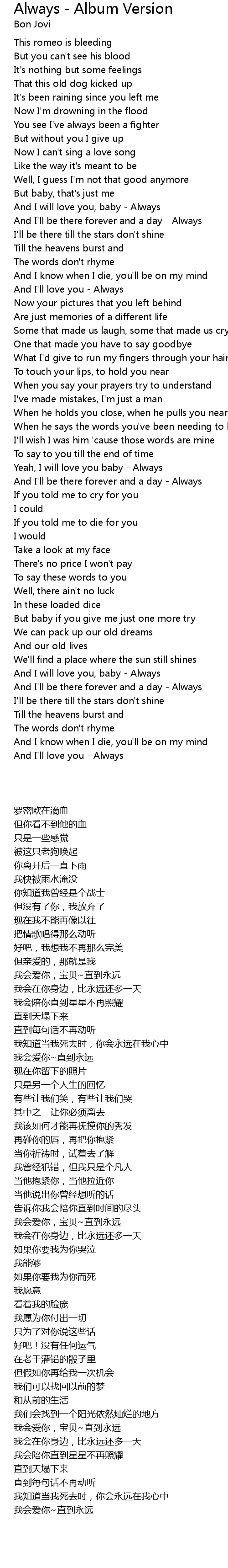 | [02:30.0] | Yeah, I will love you baby - Always |
