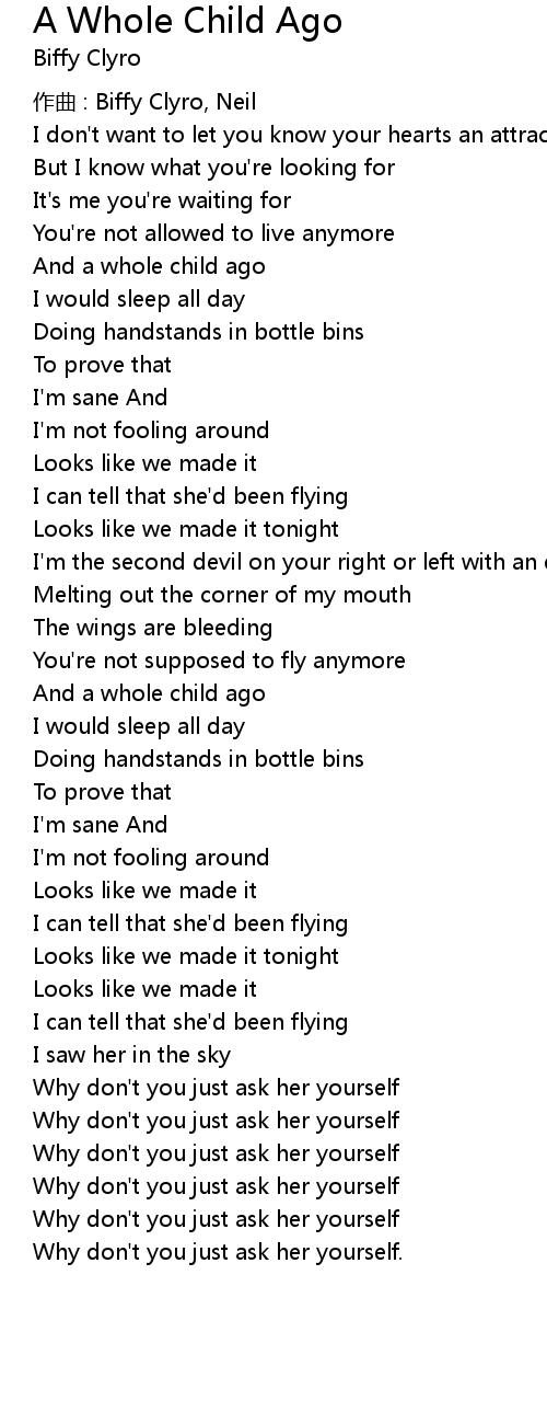 | Song | A Whole Child Ago |