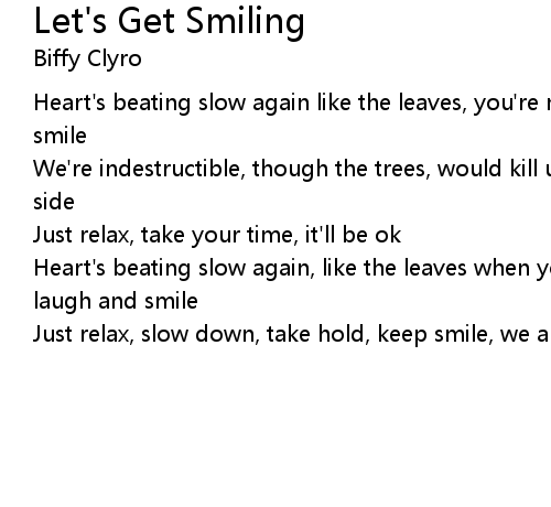 | Heart's beating slow again, like the leaves when you're not around, we just laugh and smile | |
