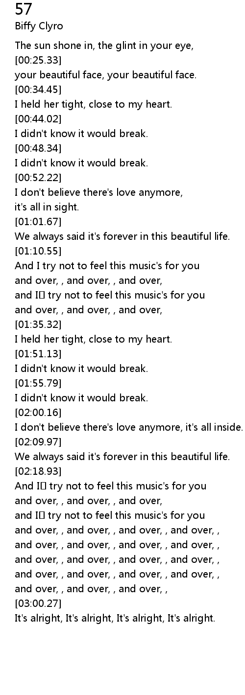 | [03:03.20] | It' s alright, It' s alright, It' s alright, It' s alright. |