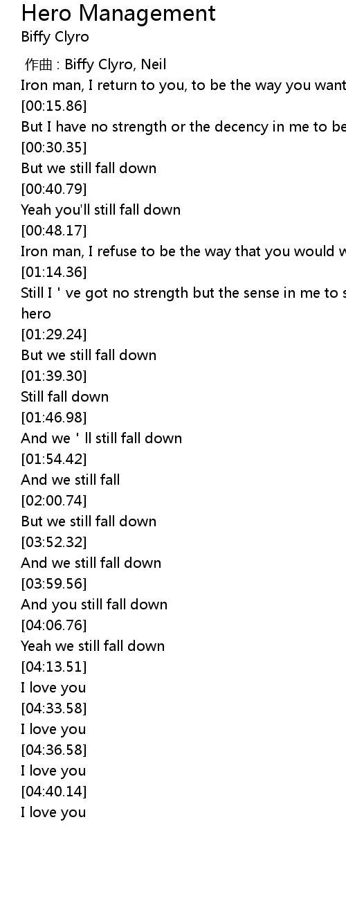 | [01:03.59] | Iron man, I refuse to be the way that you would want me |