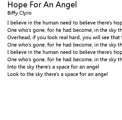 I believe in the human need to believe there's hope for an angel |