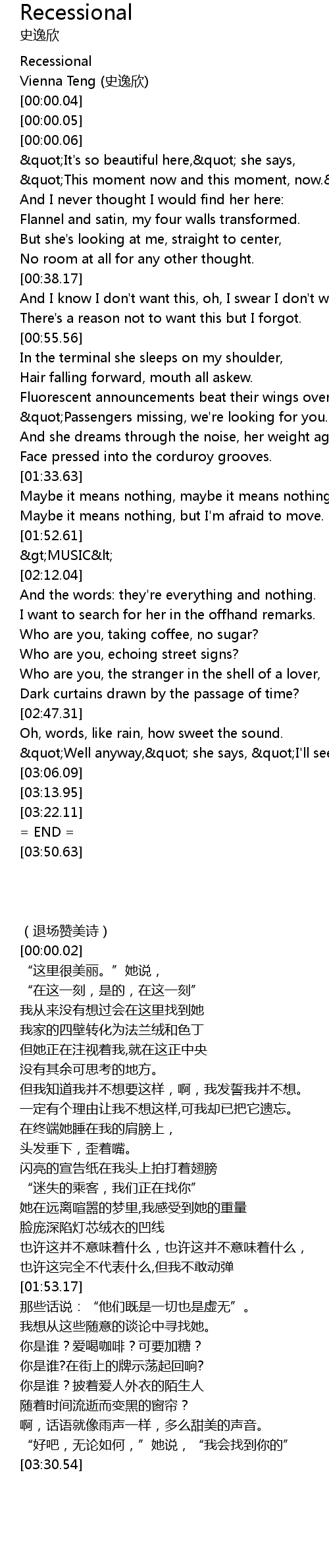 | [00:00.02] | Vienna Teng (史逸欣) |