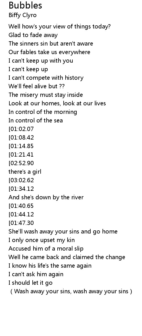 | [01:50.58][01:47.30] | She'll wash away your sins (Wash away your sins) |
