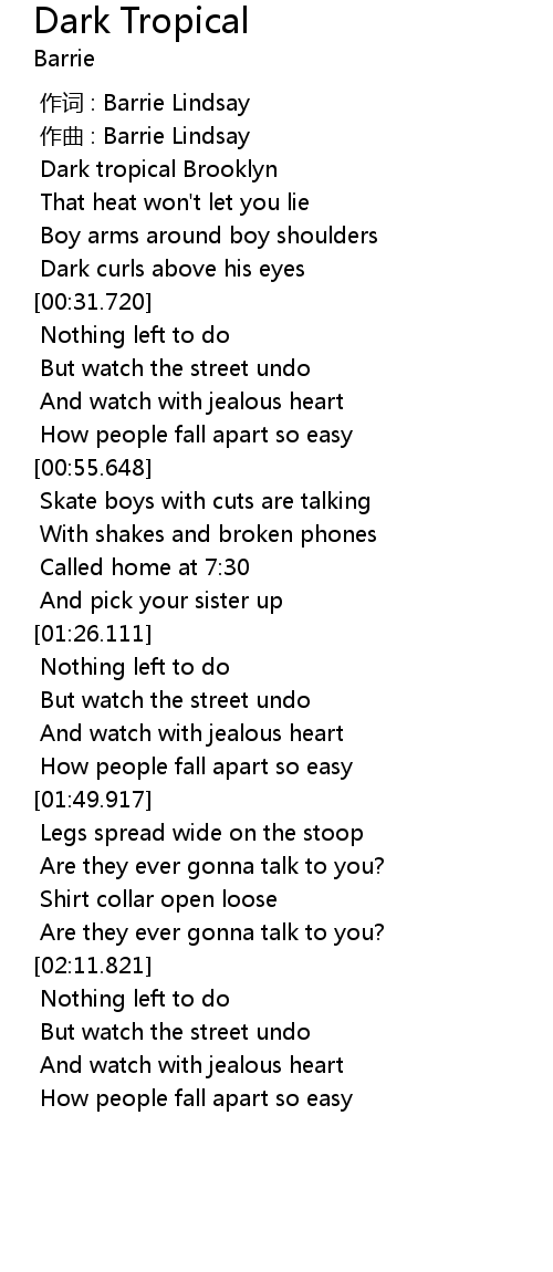 | [00:00.000] | zuò cí : Barrie Lindsay |