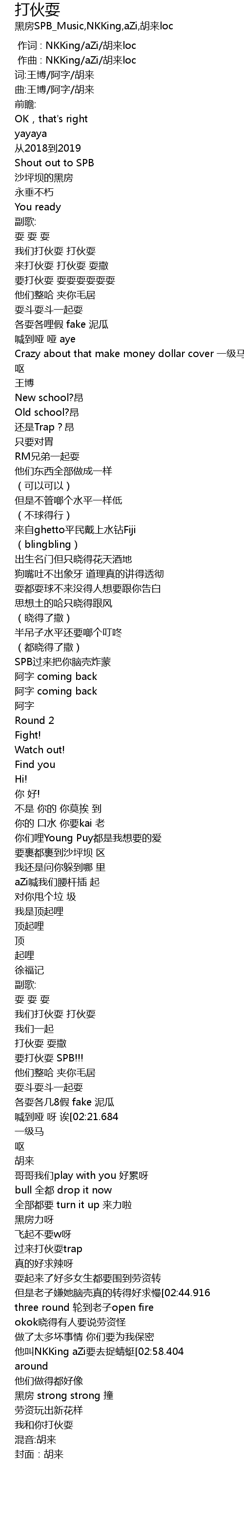 | [02:01.884] | 打伙耍 耍撒 |