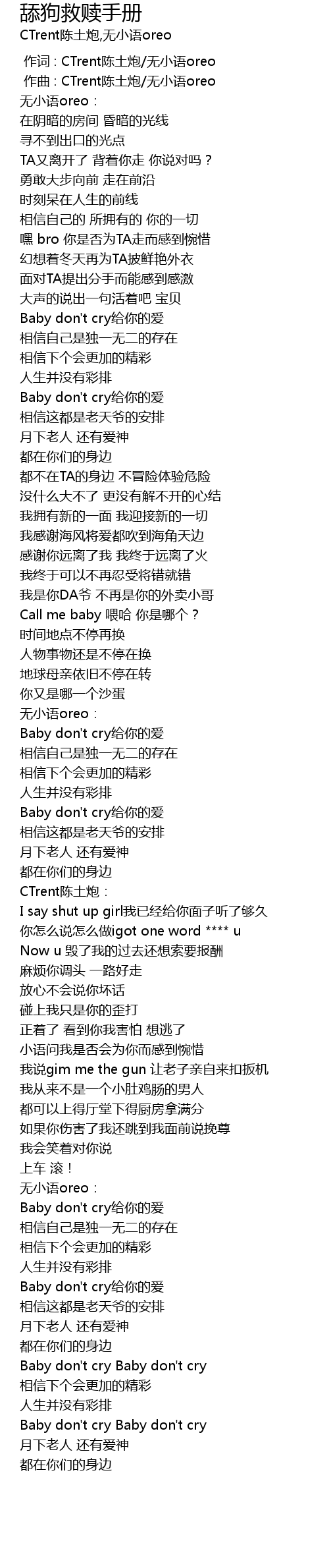| [00:00.000] | 作词 : CTrent陈土炮/无小语oreo |