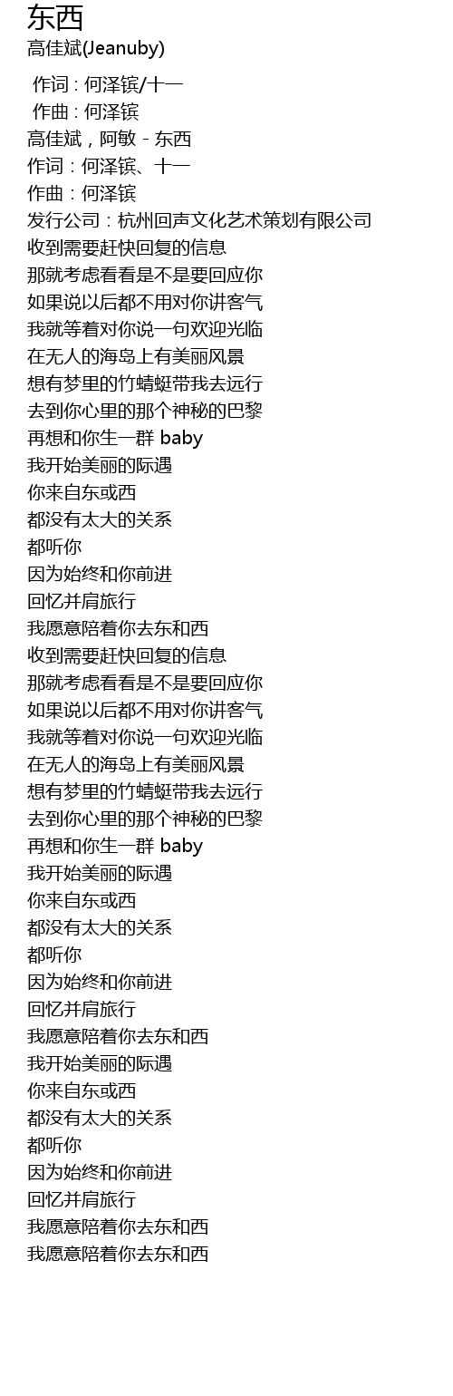 | Song | 东西 |
