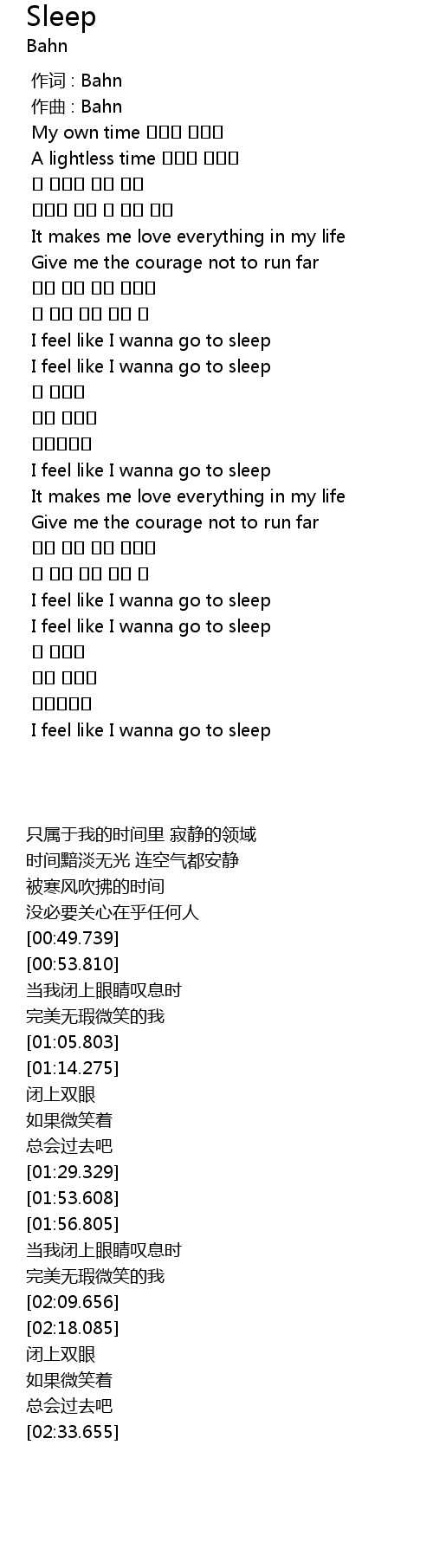 | [02:33.655] | I feel like I wanna go to sleep |