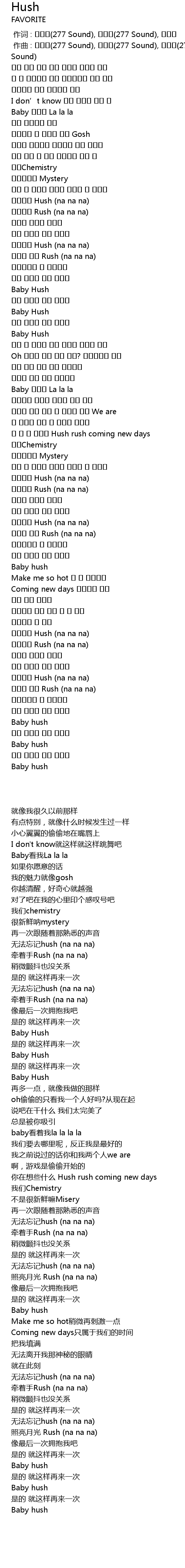 | [02:58.485] | 잊지못해 Hush (na na na) |