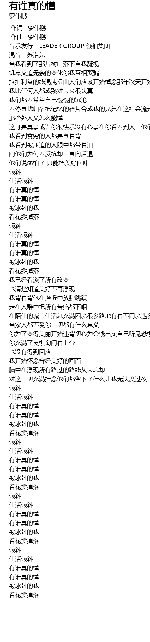 | [01:16.490] | yǒu shuí zhēn de dǒng |