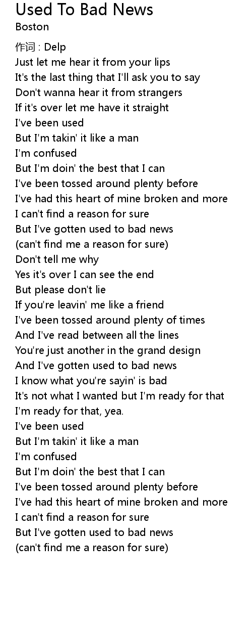 | And I' ve gotten used to bad news | |