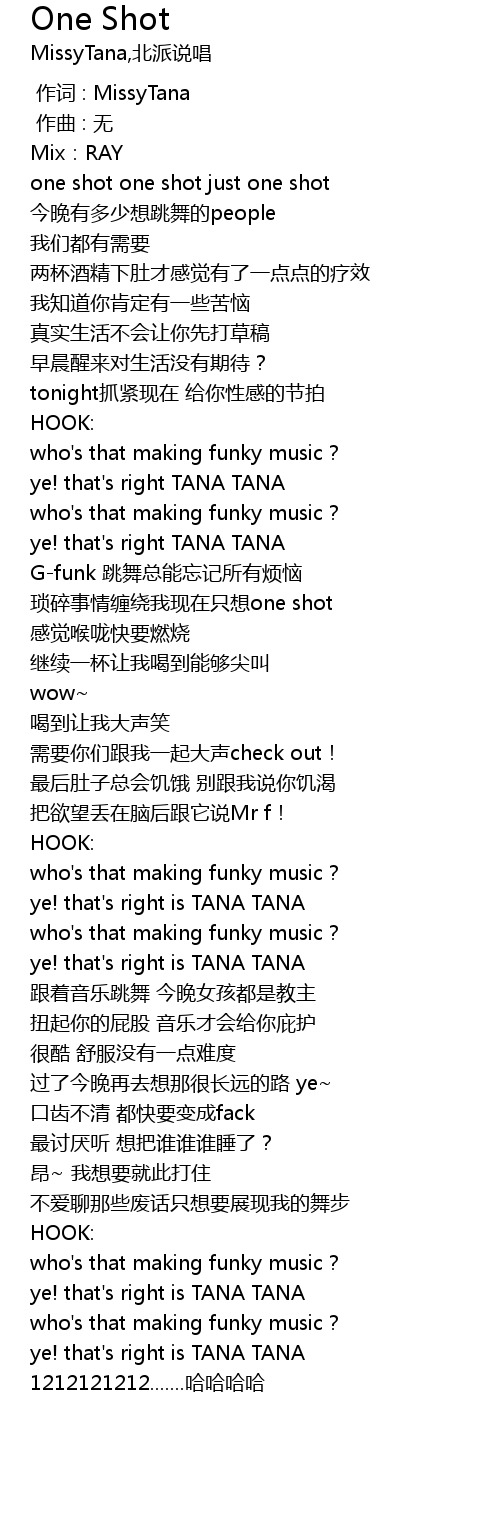 | [00:00.000] | 作词 : MissyTana |