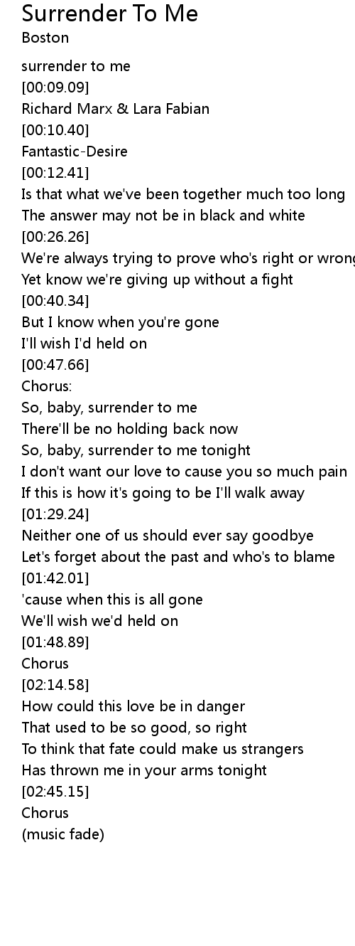 | [00:49.71] | So, baby, surrender to me |