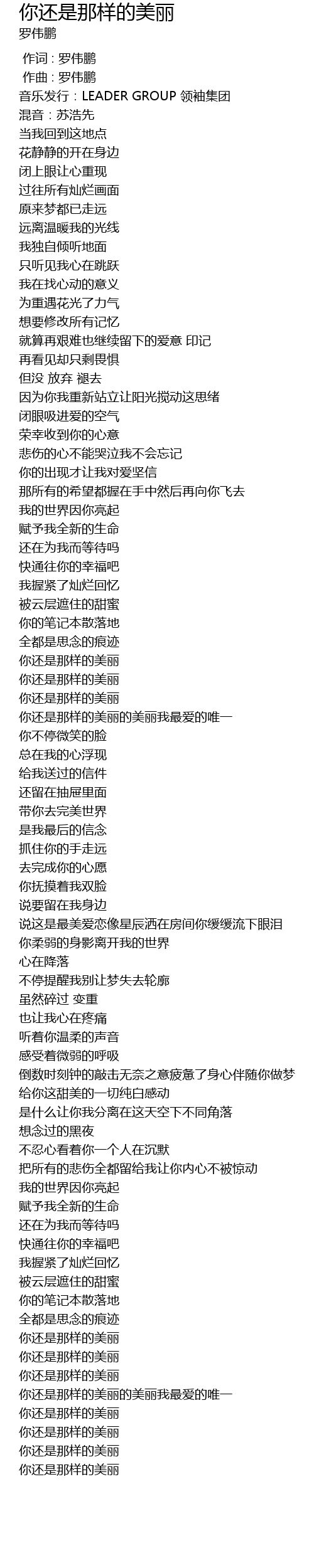 | [01:46.411] | nǐ hái shì nà yàng de měi lì de měi lì wǒ zuì ài de wéi yī |