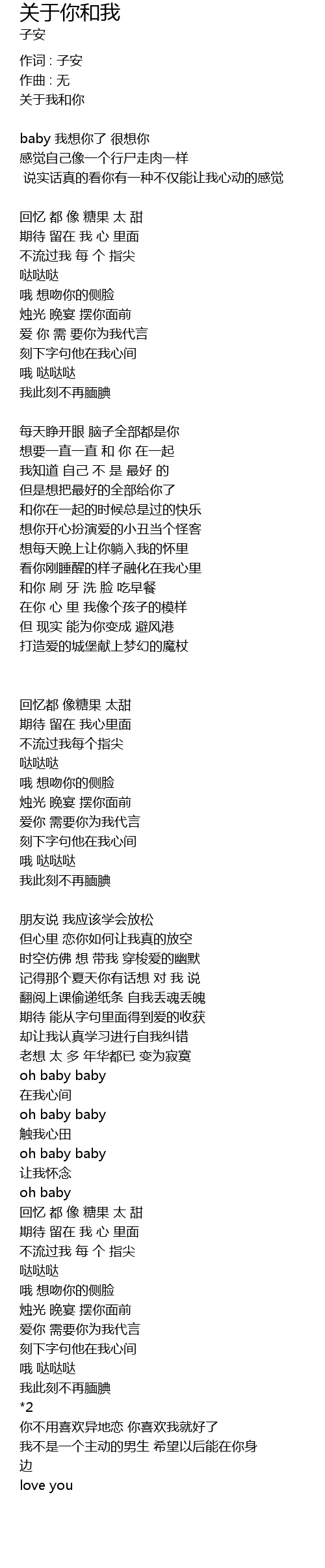 | baby wǒ xiǎng nǐ le hěn xiǎng nǐ | |
