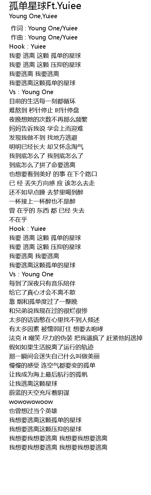 | [00:00.000] | 作词 : Young One/Yuiee |
