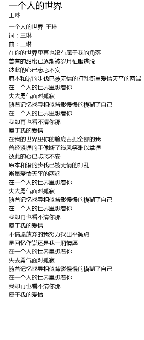 | [00:00.00] | yí ge rén de shì jiè wáng lín |