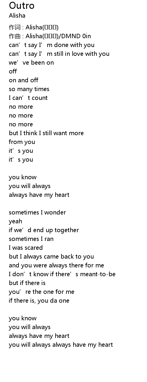 | 作词 : Alisha(알리샤) | |